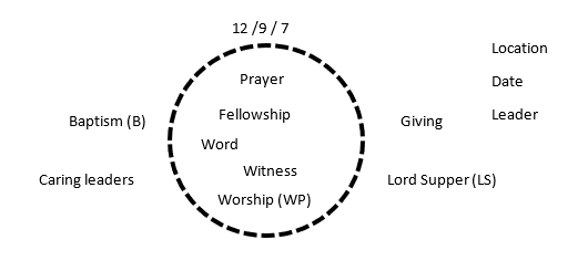 Above the circle, have them put 3 numbers: # of people in group, # of people who are believers, # who are baptized. For example: 12 / 9 / 7